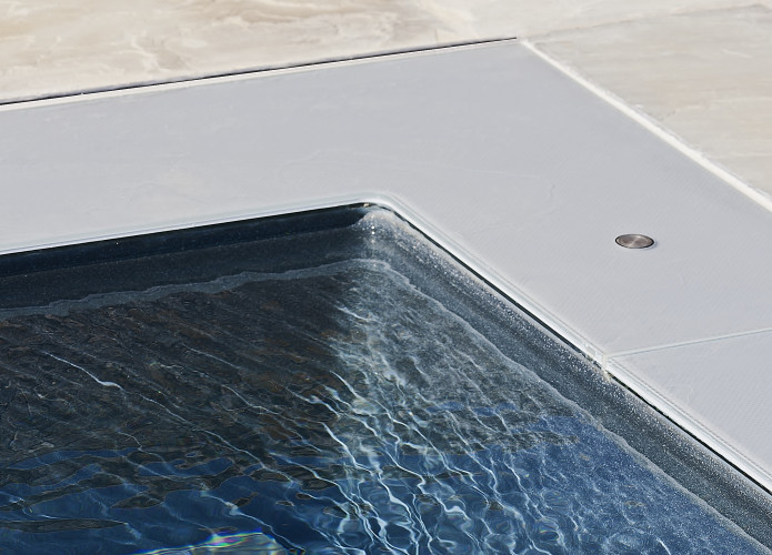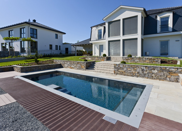Klare Linien, unverwechselbare Charakteristik und das Zusammenspiel unterschiedlicher Materialien standen beim Design-Prozess im Vordergrund. Das Ergebnis: ein Pool, der sich klar von anderen Becken abhebt.