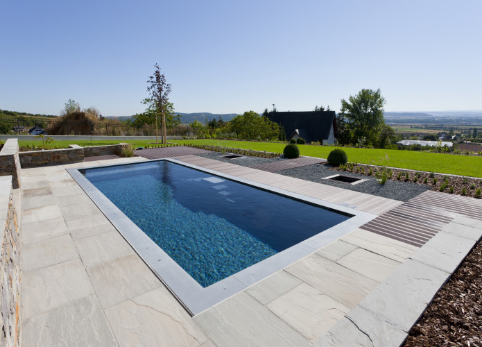 Die Design-Becken integrieren sich perfekt in moderne und klassische Gartenanlagen und setzen architektonische Akzente.