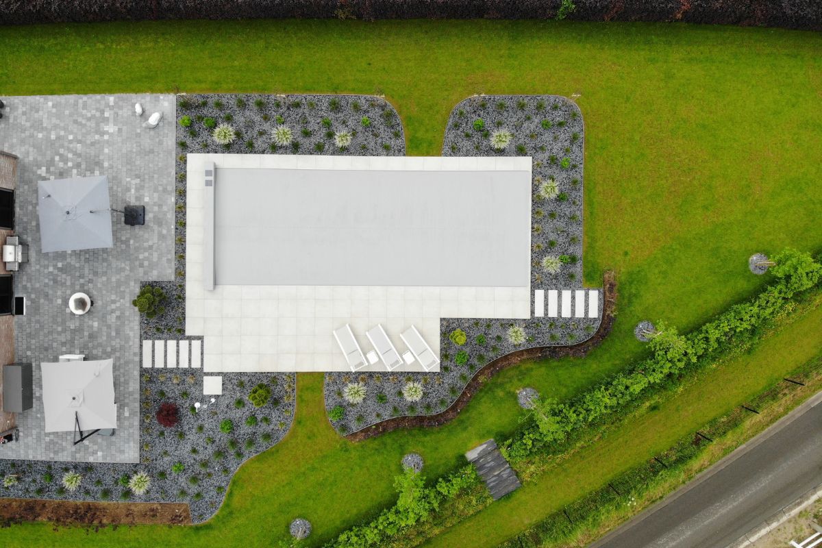 Der Wunsch des Kunden war einfach: das Schwimmbad sicher abdecken, weniger Arbeit haben und Energie sparen — ohne dass die Abdeckung den Garten dominiert. Genau das haben wir umgesetzt. Sauber geplant, präzise montiert, so unauffällig wie möglich.