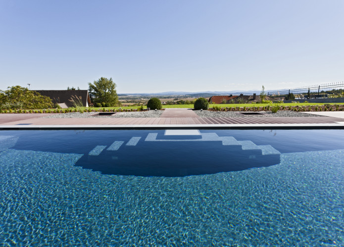 Klare Linien, unverwechselbare Charakteristik und das Zusammenspiel unterschiedlicher Materialien standen beim Design-Prozess im Vordergrund. Das Ergebnis: ein Pool, der sich klar von anderen Becken abhebt.