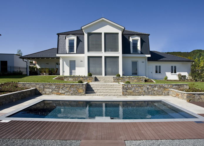 Klare Linien, unverwechselbare Charakteristik und das Zusammenspiel unterschiedlicher Materialien standen beim Design-Prozess im Vordergrund. Das Ergebnis: ein Pool, der sich klar von anderen Becken abhebt.